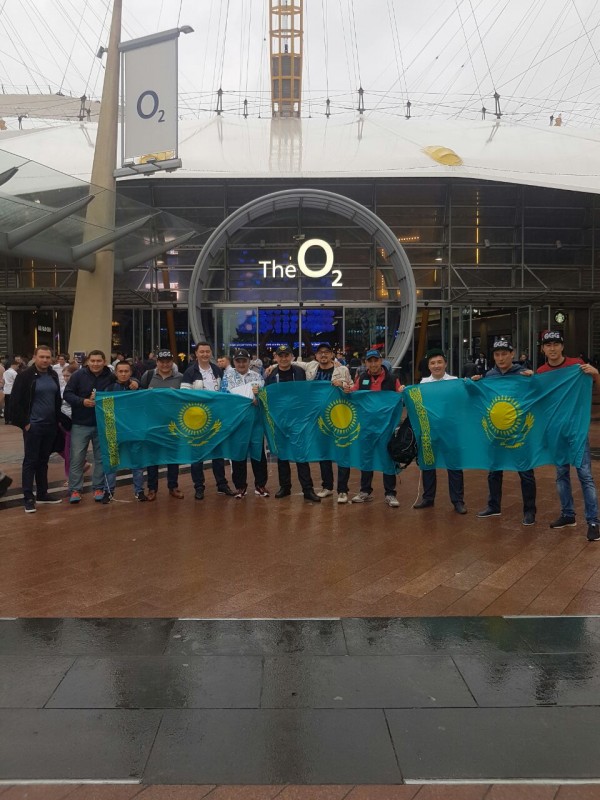 "На стадионе атмосфера классная была. Многие наши осуждают - почему англичане освистывают Гену? Рядом с нами сидели англичане, они очень дружелюбные. Они говорят: "Мы знаем, что Гена победит, но дайте нам хотя бы так порадоваться, мы же должны за своего болеть". Вообще англичане очень понравились. Стадион, арена O2 "взрывалась" вчера. Музыка, атмосфера людей заряжают. Эмоций куча, в первый раз на такой бой приехал", - поделился впечатлениями Каир, который приехал на бой со своими друзьями Максатом и Дарханом.