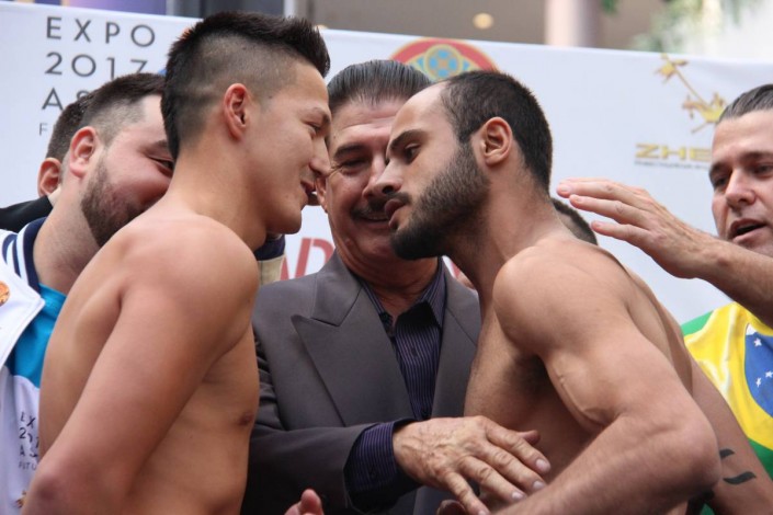 Ниязов встретил действия соперника улыбкой. Боксеров разнял промоутер Нельсон Лопес-старший. Добавим, что боксеры выступят с лимитом первого полусреднего веса (63,5 килограмма) - бразилец показал на весах 62,1 килограмма, а его соперник - 63,3 килограмма.