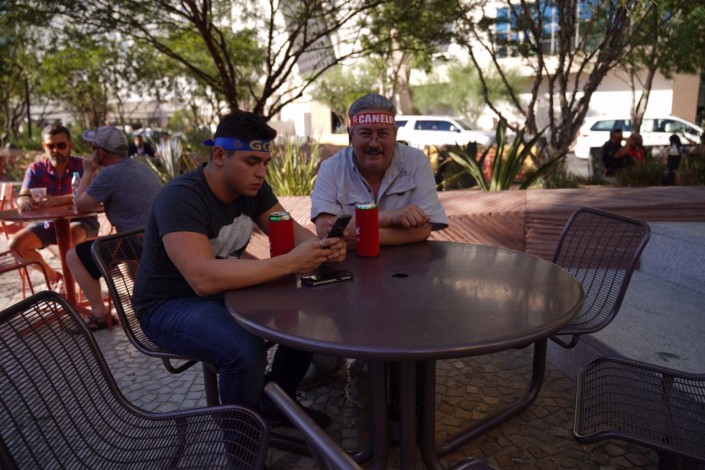 Фотограф Tengrinews.kz запечатлел любителей бокса, которые пришли понаблюдать за поединком Геннадия Головкина и Сауля "Канело" Альвареса.