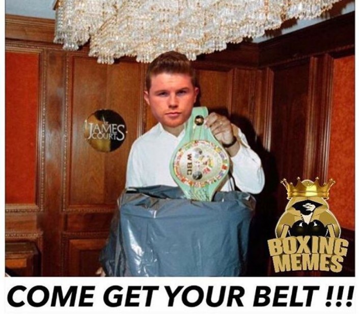 Между тем любители бокса по всему миру отреагировали на отказ "Канело" от пояса множеством мемов и смешных коллажей в соцсетях, считая, что настоящий чемпион может лишиться пояса только в поединке. Спортивный портал Vesti.kz сделал целую подборку таких изображений.