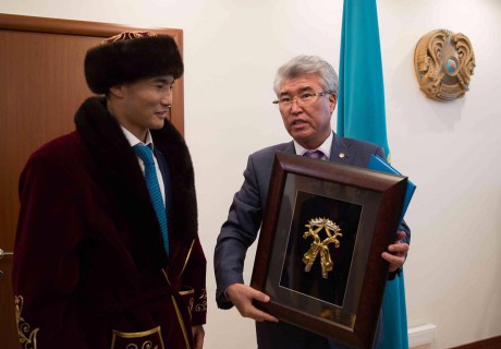 Министр культуры и спорта Казахстана Арыстанбек Мухамедиулы подарил боксеру Канату Исламу казахский чапан, сообщают Vesti.kz. Отмечается, что их встреча состоялась в Астане сегодня, 4 ноября.