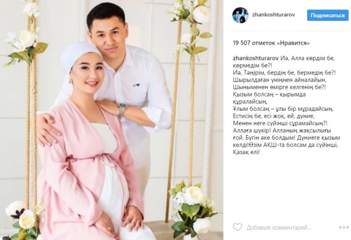 "Сегодня я стал отцом. Слава Всевышнему, у меня родилась дочка", - написал Тураров.