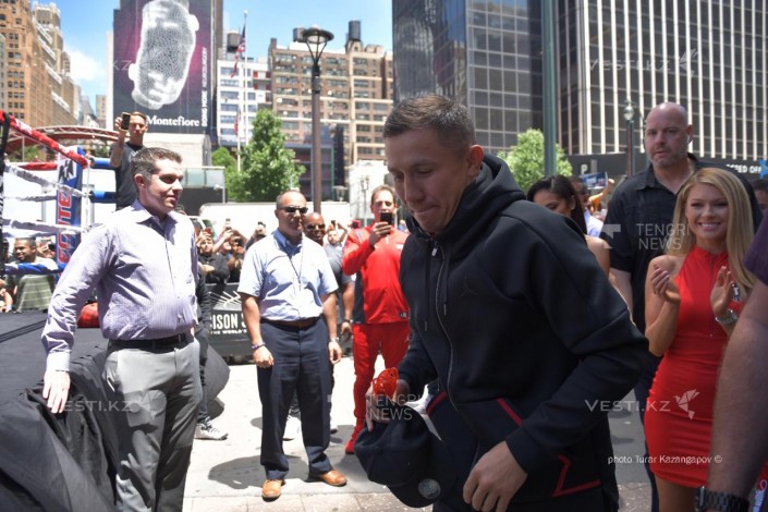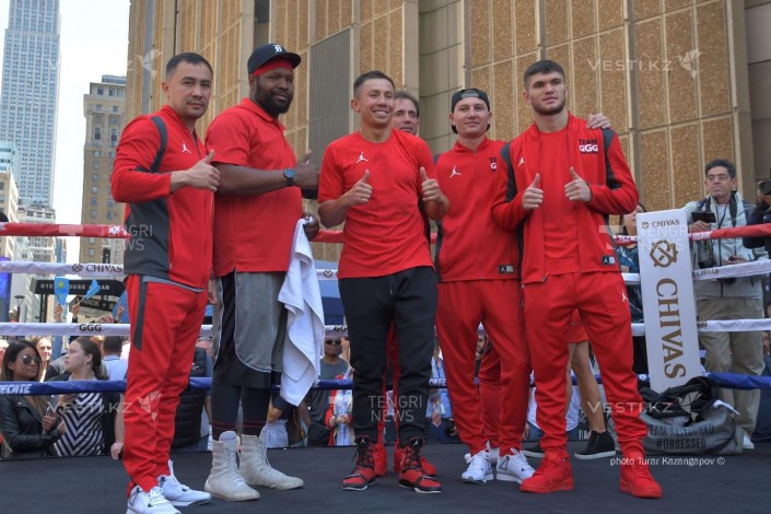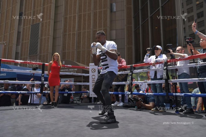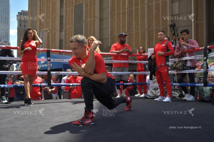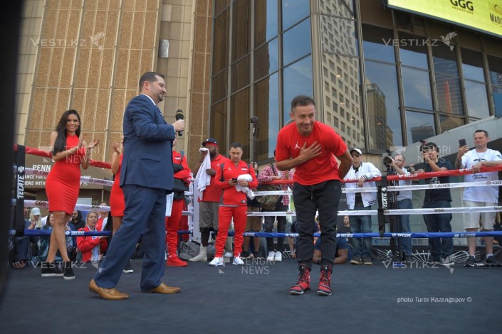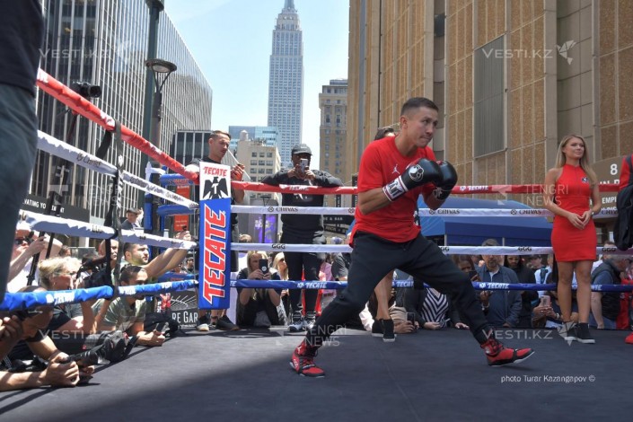 В эти минуты проходит открытая тренировка казахстанца Геннадия Головкина и канадца Стива Роллса перед боем, передает Тengrinews.kz со ссылкой на Vesti.kz.