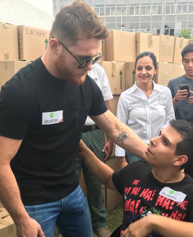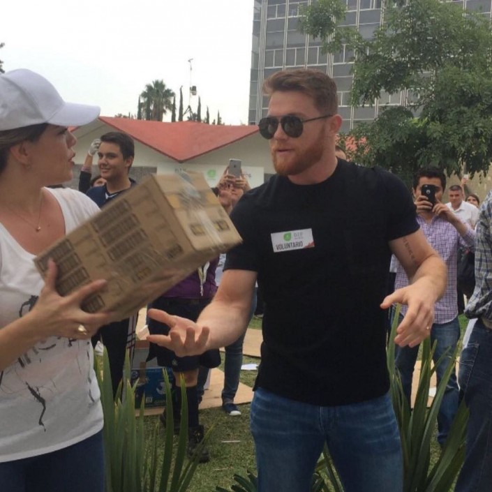 Средства спортсмена пошли на приобретение продовольствия, медикаментов и строительных материалов. После ничейного поединка с Геннадием Головкиным 27-летний боксер вернулся на родину в города Гвадалахара, где включился в число добровольцев, помогавших загружать грузовики припасами, предназначенными для пострадавших от стихийного бедствия.