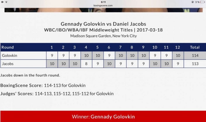 Решение судей по бою Головкин - Джейкобс опубликовали в Сети Фото: HBO.com