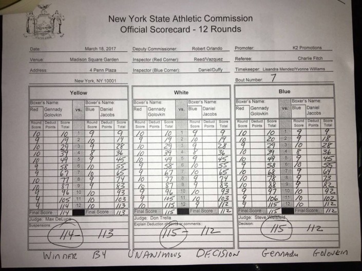 Решение судей по бою Головкин - Джейкобс опубликовали в Сети