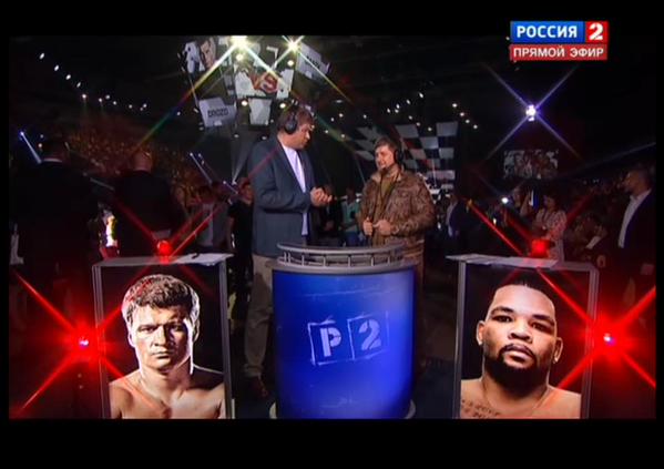 На боксерском шоу присутствовал глава Чечни Рамзан Кадыров. Кадр телеканала "Россия-2"