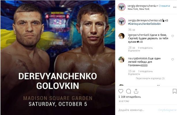 Соперник Головкина за титул чемпиона мира удалил объявление о бое из соцсетей instagram.com/sergiy.derevyanchenko