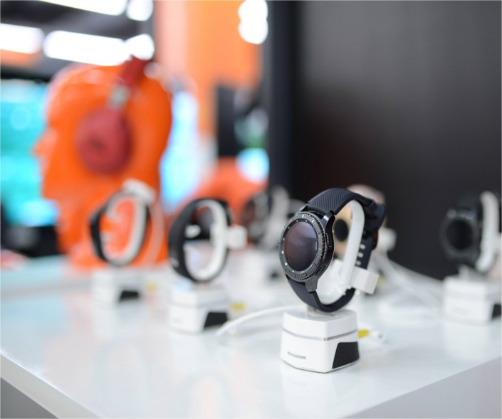 На витрине выложены различные спортивные девайсы, которые позволят подключить в процесс тренировок самые последние разработки и инновации.