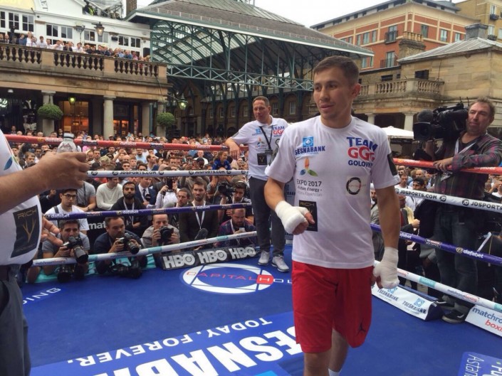 Тренировка Головкина на улице Лондона собрала толпы зрителей