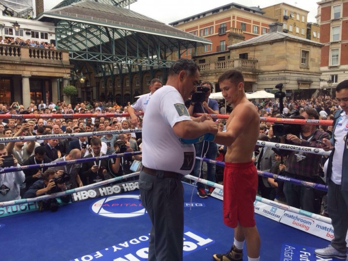 Ринг был сооружен на одной из улиц Лондона. Это первое появление казахстанского боксера перед британской публикой. Как отмечает спортивный портал, мероприятие собрало толпы зрителей.