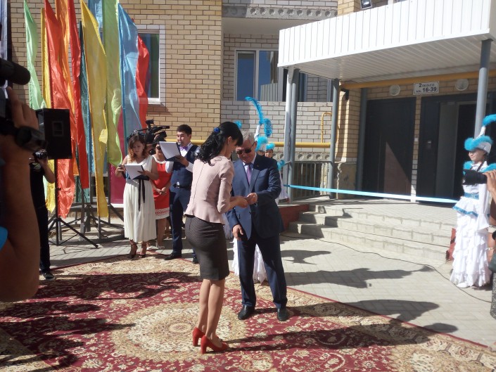 54 семьи в Актобе в День Конституции обрели арендное жилье. Трехэтажный жилой дом находится в жилом массиве "Кирпичный". Сегодня аким области Бердибек Сапарбаев лично вручил в руки счастливых, теперь уже владельцев собственного жилья, ключи, передает корреспондент Tengrinews.kz.