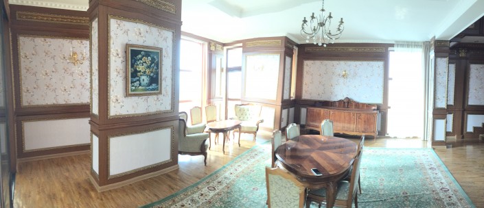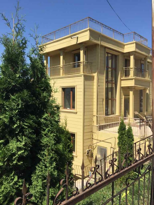 "650 кв.м, уютный европейский дом 2010 года постройки. В огороженном коттеджном городке. Недавно завершенный новый евроремонт: мрамор, оникс, дорогие столярные изделия, паркет дуб античный (Финляндия), двери - массив ольхи, венецианский, сантехника Villeroy & Boch, люстры итальянского Moroso и Swarovski, теплые полы, вся мебель от итальянских и французских производителей, бытовая техника европейских производителей. Первый этаж: прихожая, гостевая спальня, гостевая ванная комната, кухня с гостиной-столовой и выходом на террасу, холл, витражи. Второй этаж: спальня с ванной комнатой и гардеробной, гостевая спальня с ванной и гардеробной, кабинет, детская, общая ванная комната. Третий этаж: большая игровая комната, сезонный гардероб, кладовая. Цоколь: кинозал с караоке, кухня, спортзал, спальня для персонала, санузел, котельная. Участок ровный, шикарный вид на горы и город, хорошие соседи. Автоматические ворота, камеры в доме и территории с удаленным доступом, жалюзи, сигнализация. Европейский текстиль. Городские коммуникации: центральное водоснабжение и газ, высокоскоростной интернет, кабельное и спутниковое телевидение, цифровая телефонная сеть, стабильный источник питания трехфазный из двух линий (по желанию). Газон, цветы, хвойные насаждения, фруктовые деревья. Удобный доступ для автомобилей. Гараж на две машины. Место очень подходит для любителей активного и здорового образа жизни. Большинство комнат в доме открывается прекрасный вид на горные склоны, сады и ночного города", - говорится в первом объявлении. Стоимость недвижимости - около двух миллионов евро.