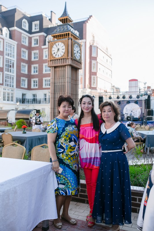 Сделать это было легко, ведь James Bond Party проходила в просторном дворе, который благодаря разноцветной брусчатке и цветам создает своеобразное полотно флага Великобритании. Также в самом центре двора установлена точная копия главной достопримечательности Лондона - Биг-Бена, ежедневный бой которого напоминает о традиционном английском tea-time. Не менее знаменитые красные телефонные будки и гвардейцы в высоких меховых шапках полностью погружали гостей мероприятия в мир британской жизни.