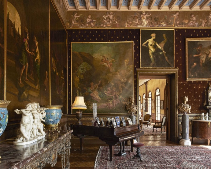 Площадь особняка - 1672 квадратных метра, в нем 14 спален, а в гостиных, обставленных антикварной мебелью, имеются артефакты от прошлых владельцев: стены одной из комнат обтянуты шелком с вензелем короля Леопольда II, на стенах висят портреты Каролин Делакруа, на камине выведены инициалы семьи Марнье-Лапостоль.