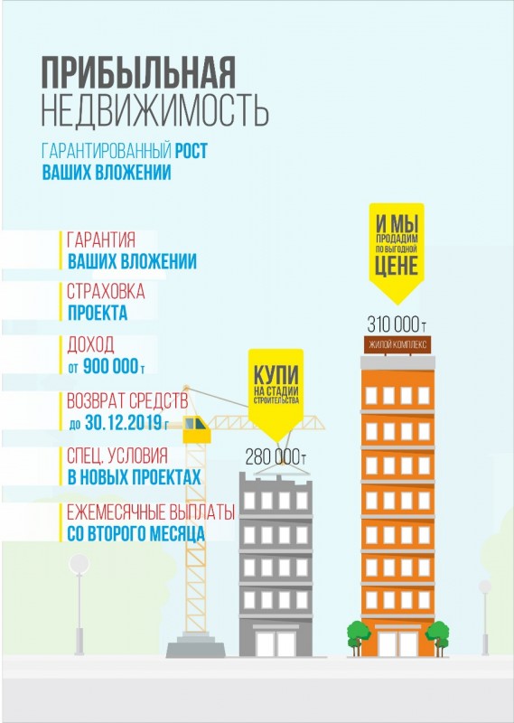Первая программа ориентирована на бизнесменов и просто желающих вложить выгодно деньги. Каждый казахстанец может выгодно вложить деньги без потерь с гарантированным возвратом и ежемесячным получением дохода.