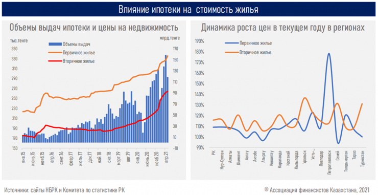 "Высокий спрос со стороны населения, обусловленный действием госпрограмм по приобретению жилья, и расширение кредитования со стороны "Отбасы банка" существенно оживили рынок жилья. Стоимость недвижимости, несмотря на пандемию и снижение деловой активности в стране, выросла в 2020 году на первичном рынке на 5 процентов, на вторичном рынке - на 14 процентов.