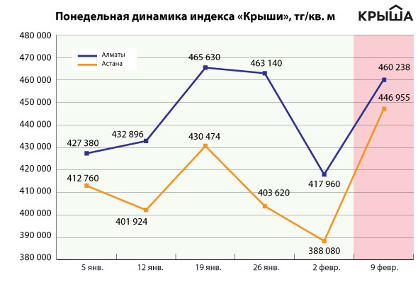 "Рост средних цен предложений произошел по ряду причин. Первая из них - ожидания продавцов. Судя по объявлениям, авторы все равно устанавливают цену, ориентируясь на курс, причем не на текущий, а на неофициальный, прогнозируемый (ожидаемый)", - поясняет "Крыша". Отмечается, что более половины продавцов в отдельных сегментах заложили в стоимость квартир курс в 415-420 тенге за доллар.