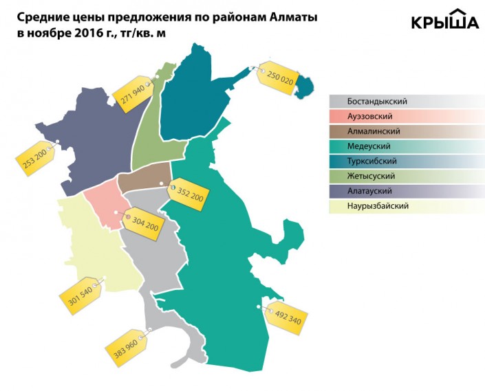 Портал Krisha.kz проанализировал данные за 11 месяцев 2016 года и выяснил, какие районы города лидировали по темпам снижения цен, а какие менее охотно адаптировались к сложной ситуации на рынке.