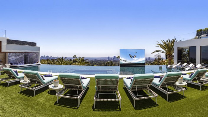 Площадь недвижимости, расположенной в элитном районе Бель-Эйр, составляет 3 530 квадратных метров. В доме 12 спален, 21 ванная комната, три кухни, боулинг, кинотеатр на 40 человек, 85-метровый бассейн с живописным видом и баром, спа, фитнесс-зал, два винных погреба, а также "конфетная комната", заполненная сладостями на 200 тысяч долларов. Особняк украшен 130 произведениями искусства.