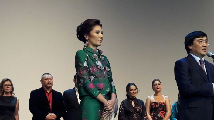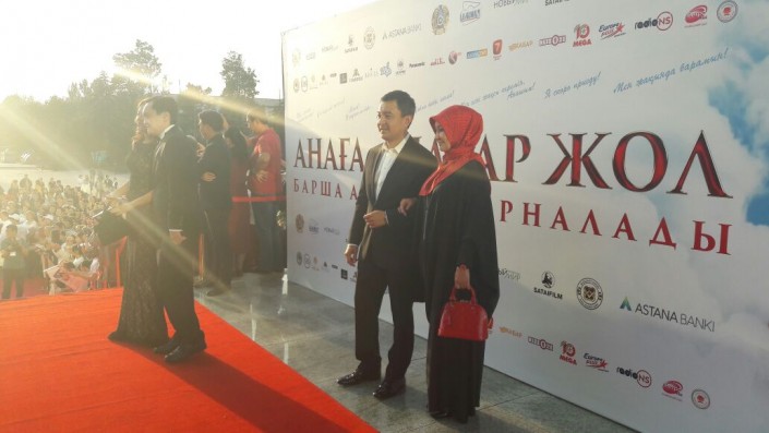 На премьеру прибыла Алия Назарбаева, которая выступает в качестве генерального продюсера фильма "Дорога к матери". Она поблагодарила всю съемочную группу и гостей премьеры.