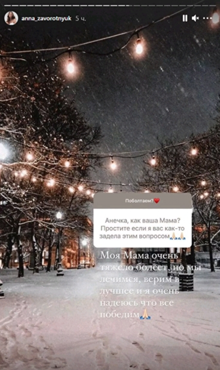 "Моя мама очень тяжело болеет, но мы лечимся, верим в лучшее, и я очень надеюсь, что все победим", - ответила ей дочь актрисы.