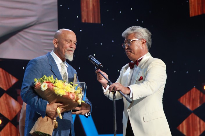 По окончанию церемонии награждения, министр культуры и спорта РК вручил присутствующему гостю из США Джону Малковичу специальный приз фестиваля "За вклад в мировой кинематограф".