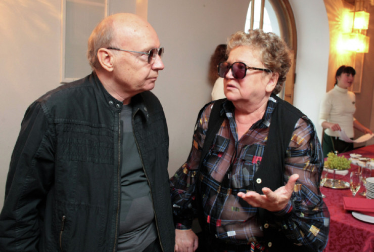 Андрей Мягков и его супруга Анастасия Вознесенская в буфете Московского Художественного театра имени Чехова. © РИА Новости