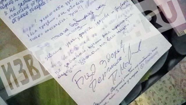 Кроме того, в распоряжении РЕН ТВ оказалась записка, на которой Марьянов оставил свои пожелания пациенту медицинского учреждения и свой автограф.