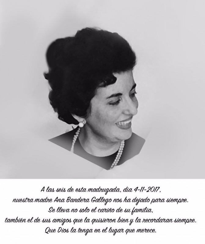 Ана Бандера Гайего родилась 22 февраля 1933 года в Касарбонеле (Испания). Большую часть жизни она проработала учительницей начальных классов.