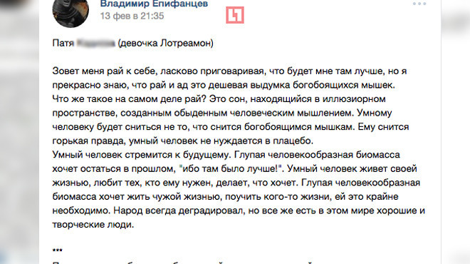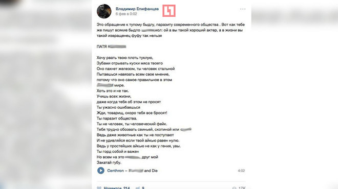 Между тем, как сообщают Dni.Ru, актер удалил страничку "ВКонтакте", которую ранее активно обновлял. Корреспонденты издания несколько раз пытались дозвониться до Епифанцева, но он не брал трубку, хотя несколько раз его абонент был "занят".
