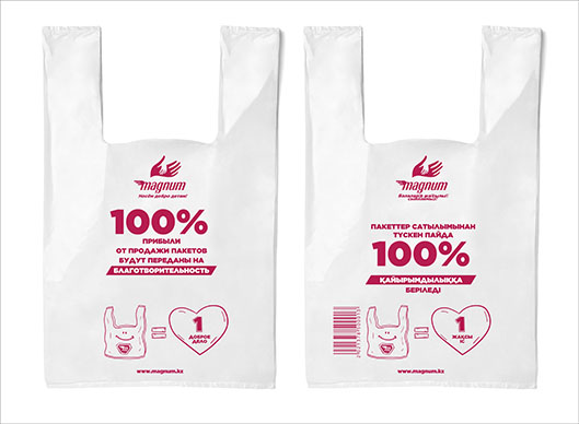 Чтобы сократить безответственное потребление, магазины начали вводить плату за пакеты. С такой инициативой выступило Министерство экологии, геологии и природных ресурсов РК. Ее поддержала крупнейшая казахстанская розничная сеть Magnum. Как сообщили в компании, все средства, собранные от продажи пакетов, будут направлены на благотворительность, основная часть – на поддержку проекта "Подари детям жизнь".