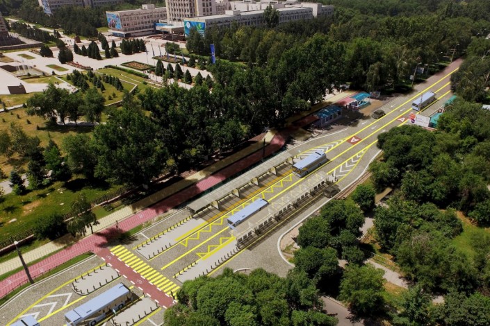 БРТ, Улица Тимирязева в районе реки Есентай и КазНУ