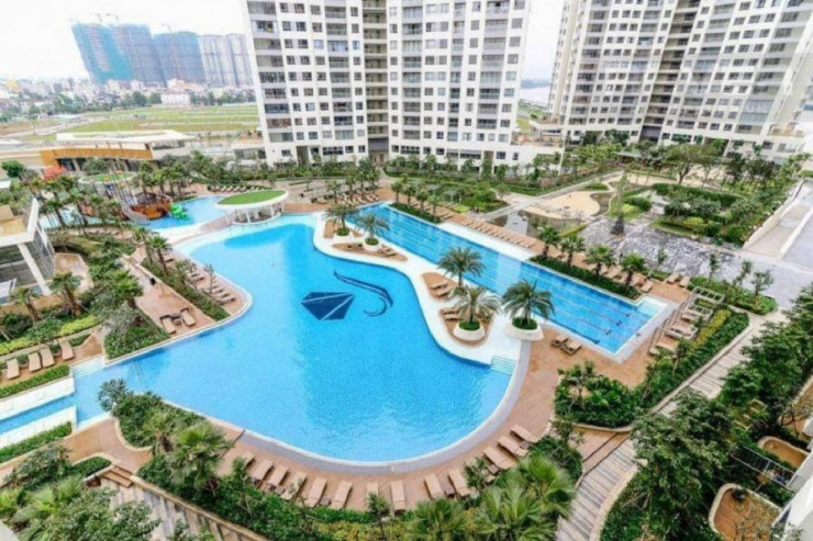 Это первый 50-метровый бассейн олимпийского стандарта в жилом комплексе во Вьетнаме. Всего в ЖК 3 бассейна: детский с аквапарком, resort style и спортивный. Кроме того, много площадок: для маленьких детей и для подростков. Высажено 1300 деревьев. Мы позиционировали проект как "комфортный для трех поколений" — дети, родители и пожилые люди - и построили необходимую инфраструктуру.