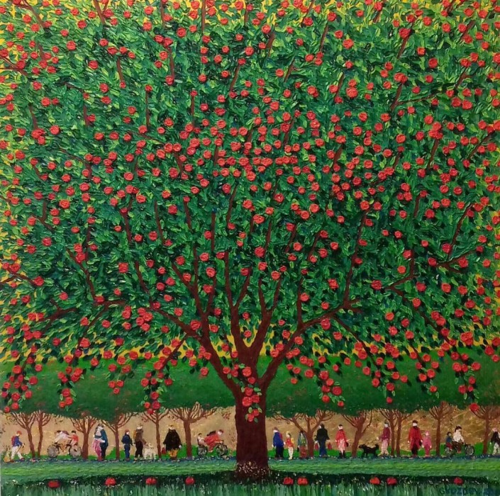 Яблоко входило в этот список 100 процентов. Но яблоко у меня имеет внутреннее содержание. В целом яблоке нарисован сад. Своеобразная философия того, что из одного яблока можно вырастить целый сад, у него есть продолжение. В тот период начали происходить такие печальные события, как вырубка садов. Я помню, как мальчишками мы бегали за яблоками в эти сады. Килограммовые яблоки были, чемпионы! Сейчас яблоки маленькие, тот же самый апорт. У меня даже одна выставка была посвящена масштабной вырубке садов. Я назвал ее "Яблочный рай". Верю, что однажды мы вернемся в райское время, когда эти яблоки к нам вернутся. Ведь в мире не было аналогов, эх…