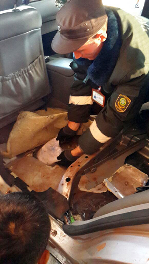 Инцидент произошел на пункте пропуска "Кайрак авто". Сотрудники Погранслужбы задержали четырех граждан Кыргызстана, которые ехали из Казахстана в Россию на автомобиле Mercedes Benz. Наличие героина в машине выдала свежая краска и свежезамазанная шпаклевка под обивкой пола заднего пассажирского сиденья. Увидев это, сотрудники досмотровой группы привели служебную собаку, которая и вынюхала наркотики. Героин был расфасован в 34 брикета. Они источали специфический запах уксуса.