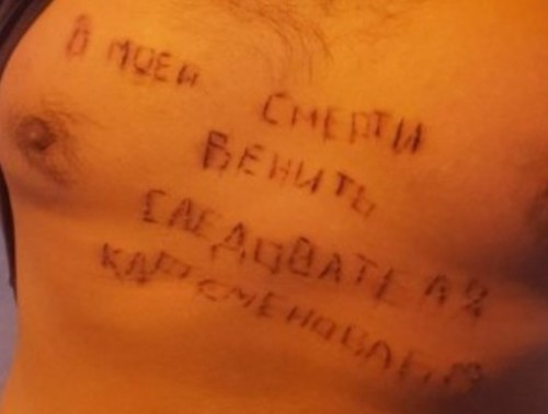 В следственном изоляторе Актобе доведенный до отчаяния подозреваемый вырезал на груди имя следователя в знак своей невиновности. Об этом сообщает Times kz.