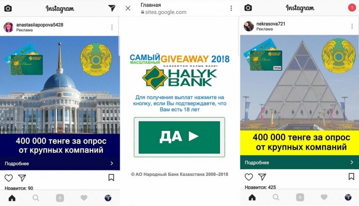 Мошенники в Instagram берут деньги за опросы под видом Halyk Bank Фото Facebook