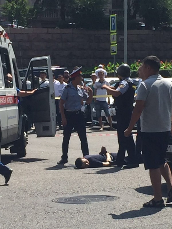 Очевидцы присылают фото с места задержания стрелявшего в Алматы в редакцию Tengrinews.kz. Сообщается, что мужчина задержан в районе КБТУ.