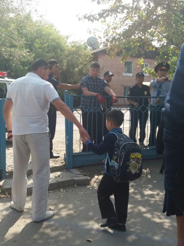 Окровавленный мужчина забежал в свою бывшую школу в Семее Фото очевидца.