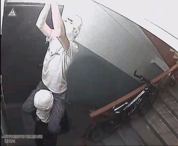Из записи с камер стало понятно, что злоумышленники еще днем заходили в подъезд, изучали расположение камер, место, где стоит велосипед. На записи также видно, что воры поднимались по лестнице спиной вперед, чтобы их лица не попали на камеру. Далее один из злоумышленников вскарабкался другому на спину и выкрутил лампочку, а после они перекусили инструментом трос и вынесли велосипед.