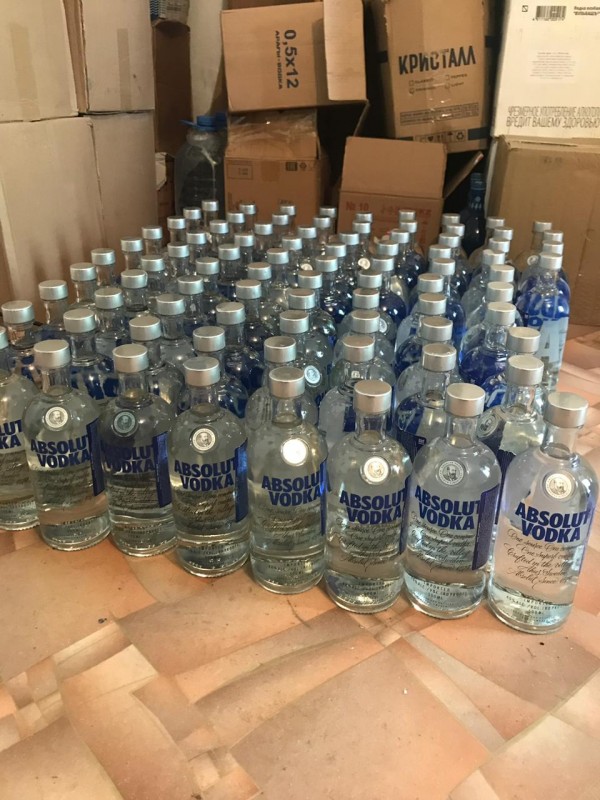 В цехе, как сообщается, нашли 800 бутылок следующих брендов: Absolut, "Хортица", "Воздух", "Мороша", "Бульбаш", "Царская", "Зерно". Также, по данным ведомства, изъяты акцизные марки сомнительного происхождения в количестве 2 100 штук, спирт в количестве 160 литров, пустые бутылки и крышки, а также 25-литровая бочка, предназначенная для изготовления и розлива алкогольной продукции.