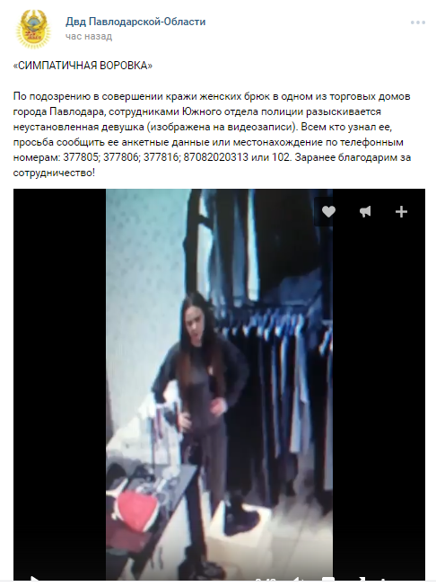 По подозрению в краже брюк в одном из торговых домов Павлодара объявлена в розыск девушка, чьи действия попали на камеру видеонаблюдения, передает корреспондент Tengrinews.kz со ссылкой на ДВД Павлодарской области.
