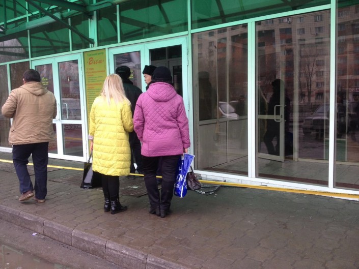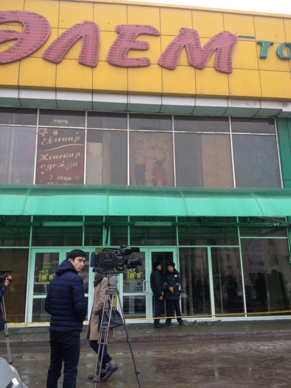 Объектом нападения грабителей стал торговый дом "Алем", расположенный около центрального рынка Караганды. Там с самого раннего утра начали собираться владельцы бутиков. На месте работали полицейские. Никого в здание не пускали, огородив его желтой лентой. Центральные входные двери были разбиты.