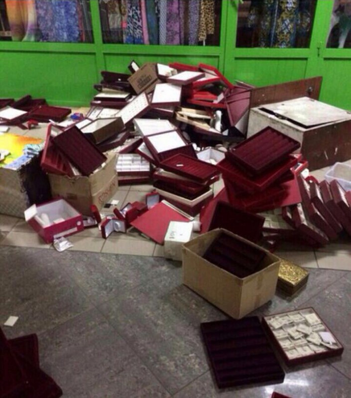 В здание до сих пор не впускают. По словам владельца одного из ювелирных бутиков, Аслана Абдрахманова, его товар не пострадал. Но соседи понесли крупные убытки. Назвать точную сумму сейчас никто из бизнесменов не может.