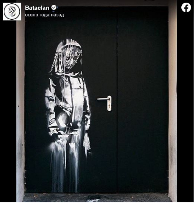 Рисунок был сделан в память о жертвах теракта 13 ноября 2015 года и изображает силуэт скорбящей девушки. Он появился на двери "Батаклана" летом 2018 года.