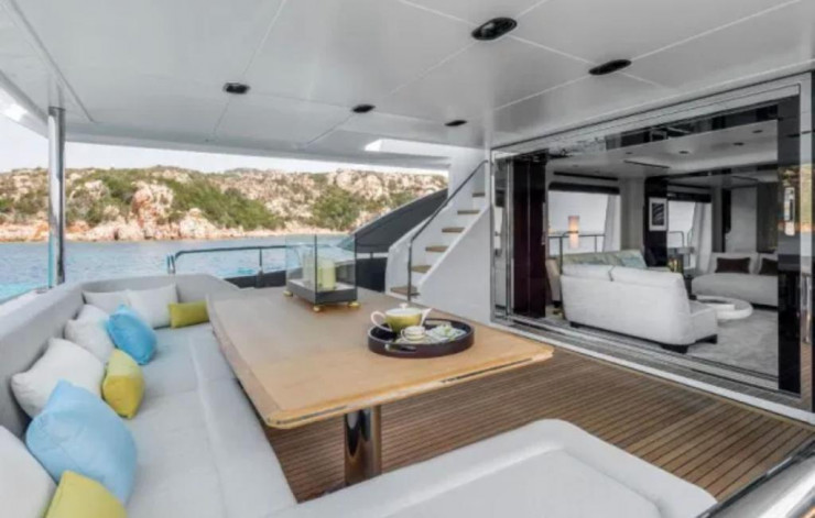 Яхта носит название Azimut Grande. Длина - 27 метров, максимальная скорость - 28 узлов.