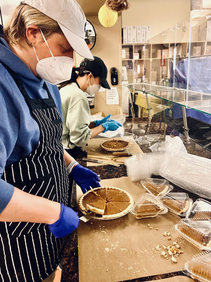На фотографии, опубликованной на сайте фонда Меган Маркл и принца Гарри Archewell Foundation, видно, как члены их команды упаковывают кусочки тыквенного пирога в женском центре. Задача фонда - помогать бездомным женщинам, а также женщинам, страдающим от домашнего насилия.