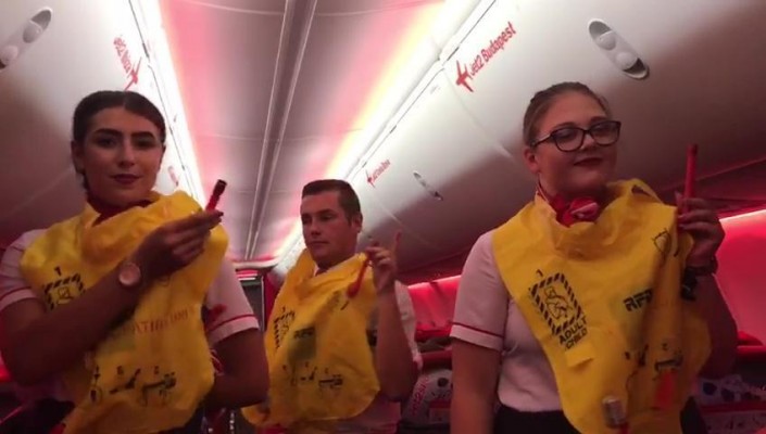 Бортпроводники встретили его фразой: "Добро пожаловать на свой частный самолет, сэр", и обеспечили ему блестящее обслуживание. Мужчина посидел в кабине пилотов, сделал селфи со стюардессами и заснял на видео, как они дают ему персональную инструкцию по безопасности.
