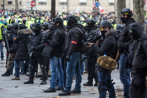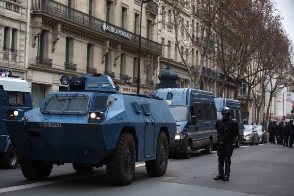 Чтобы сдержать протестующих, были мобилизованы несколько тысяч полицейских и как минимум 12 бронемашин. Бронетехника на улицах Парижа появилась впервые за 13 лет. На Елисейские поля вывели целое подразделение кинологов с овчарками. Для разгона толпы привлекли конных полицейских.